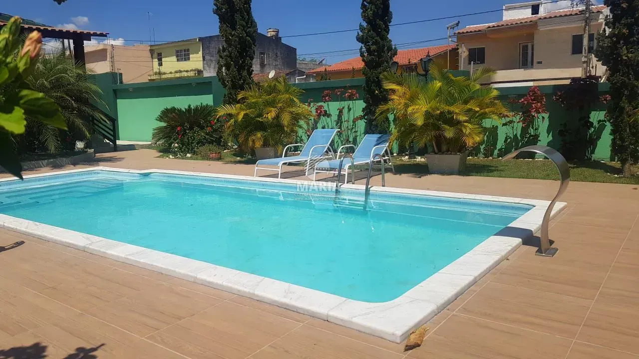 Casa com +ou - 400m² de área construída coberta, com 5 qts, sendo 3 suítes, mais dependência completa, piscina, salão de jogos, área gourmet com churrasqueira, banheiro, depósito, com 2 Lotes de 15x30