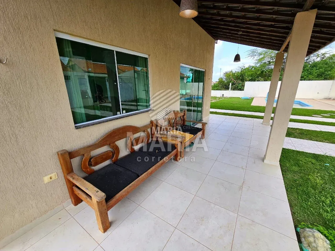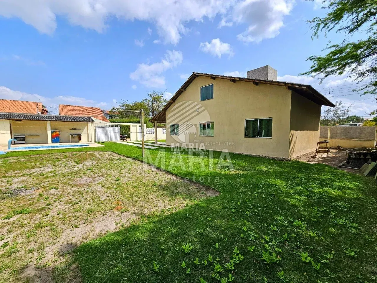 Área externa: Piscina, chuveirão, banheiro de apoio, churrasqueira, campo de vôlei/futebol, garagem para 6 carros e cisterna com 9.000 litros.