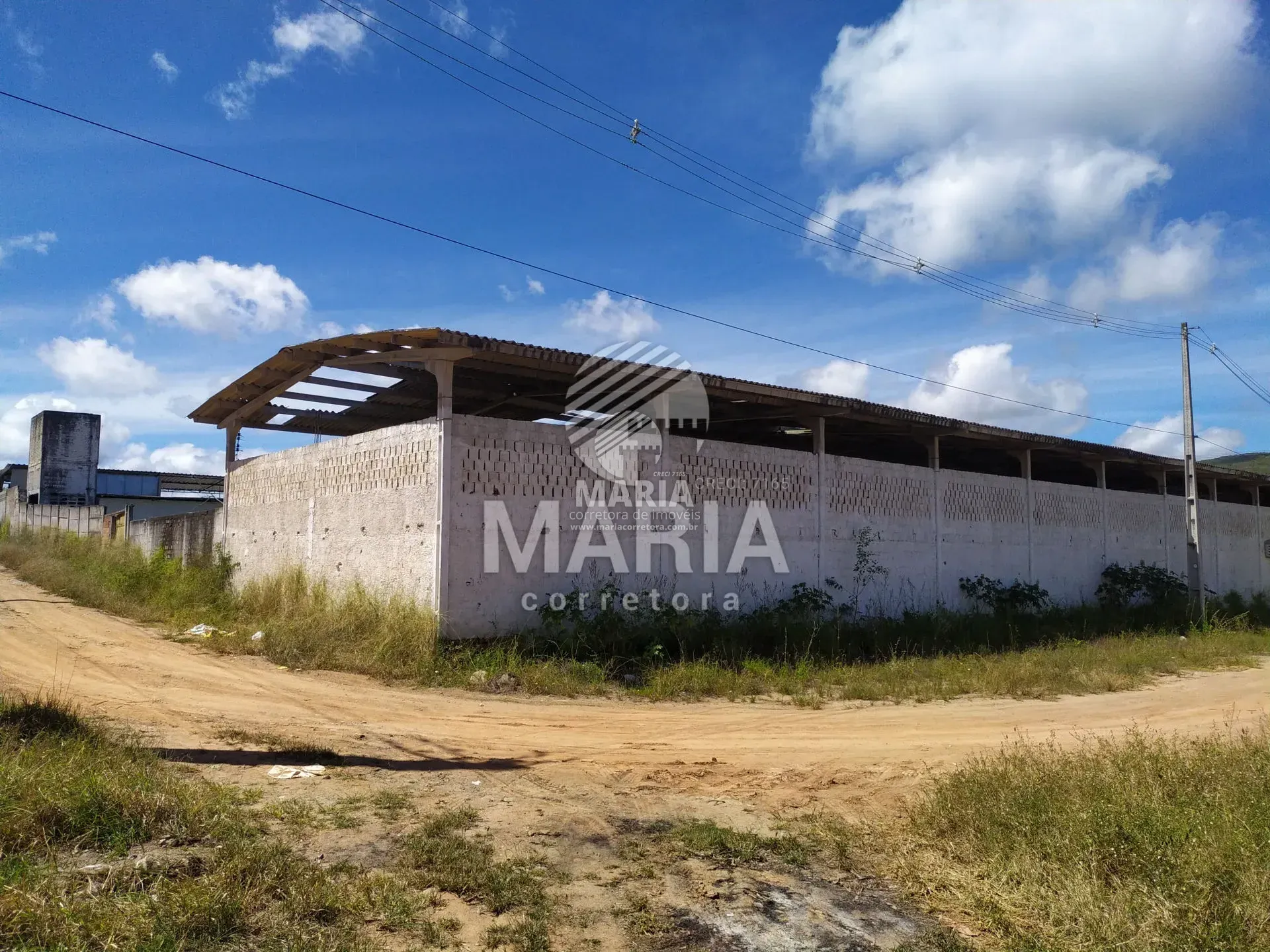O galpão dispõe de escritório, alojamento, almoxarifado, refeitório, banheiro e uma ampla área para maquinários e afins.