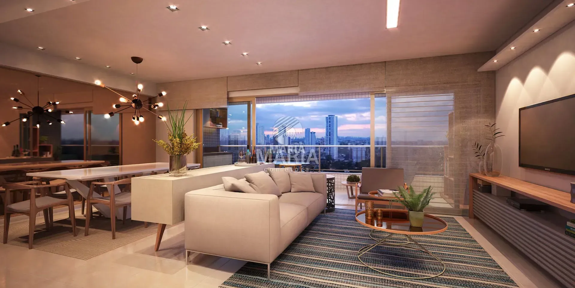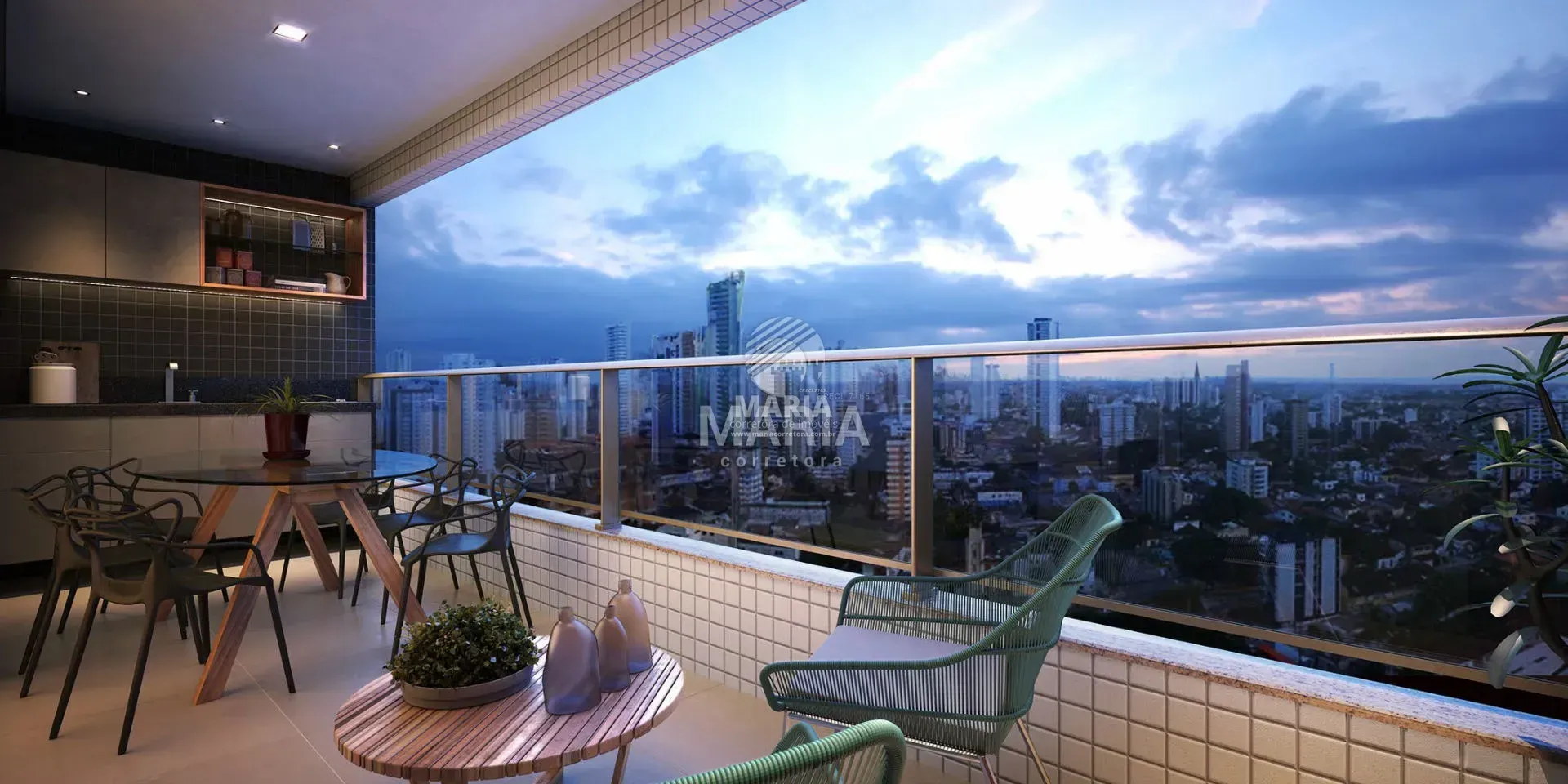 Unidades constituídas de varanda gourmet, sala (02 ambientes), 04 quartos sendo 02 suítes (01 master), 01 bwc social, cozinha com área de serviço e dependência com bwc de serviço.