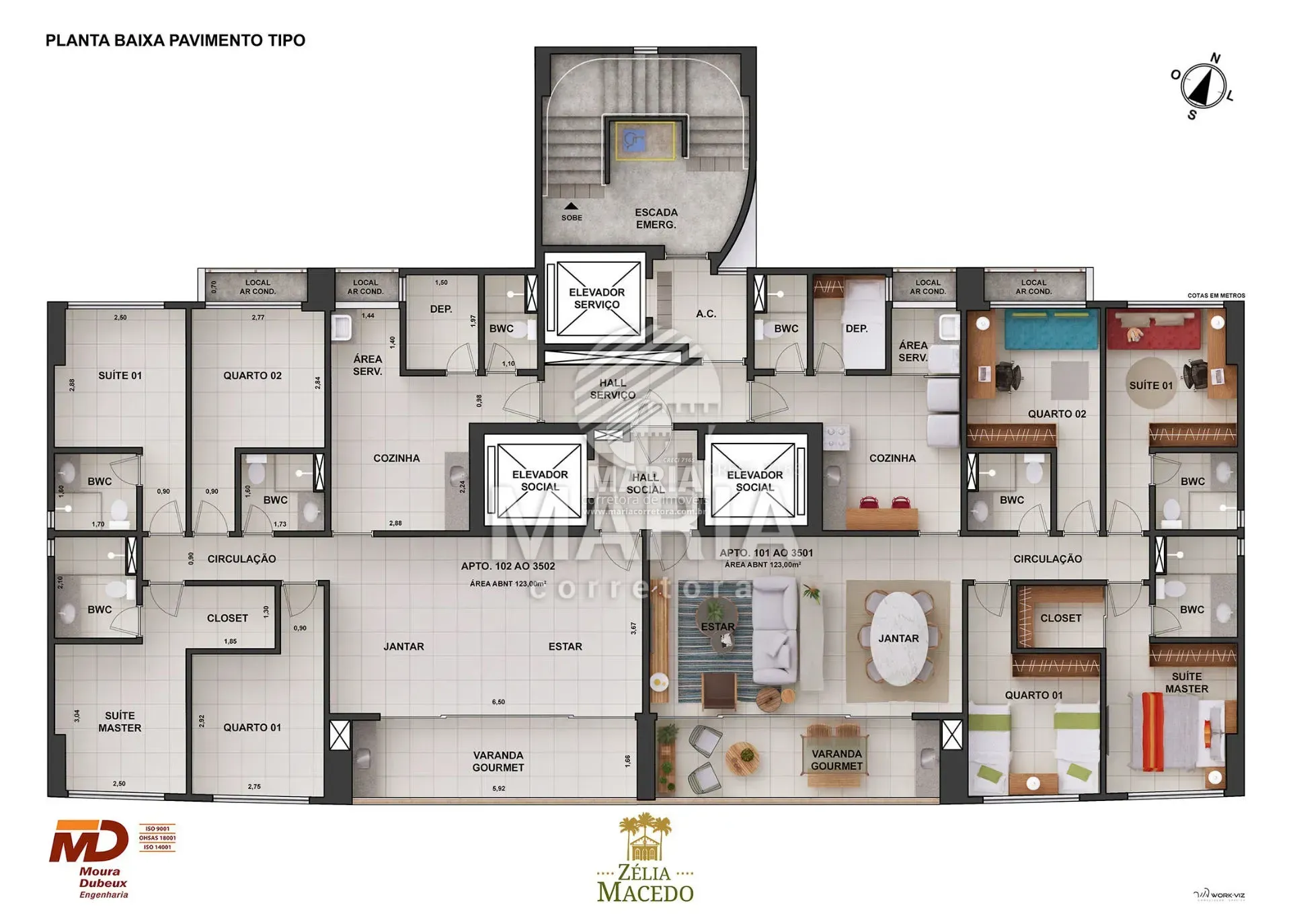 O empreendimento é constituído de 01 torre com 35 pavimentos, sendo 02 unidades por andar.