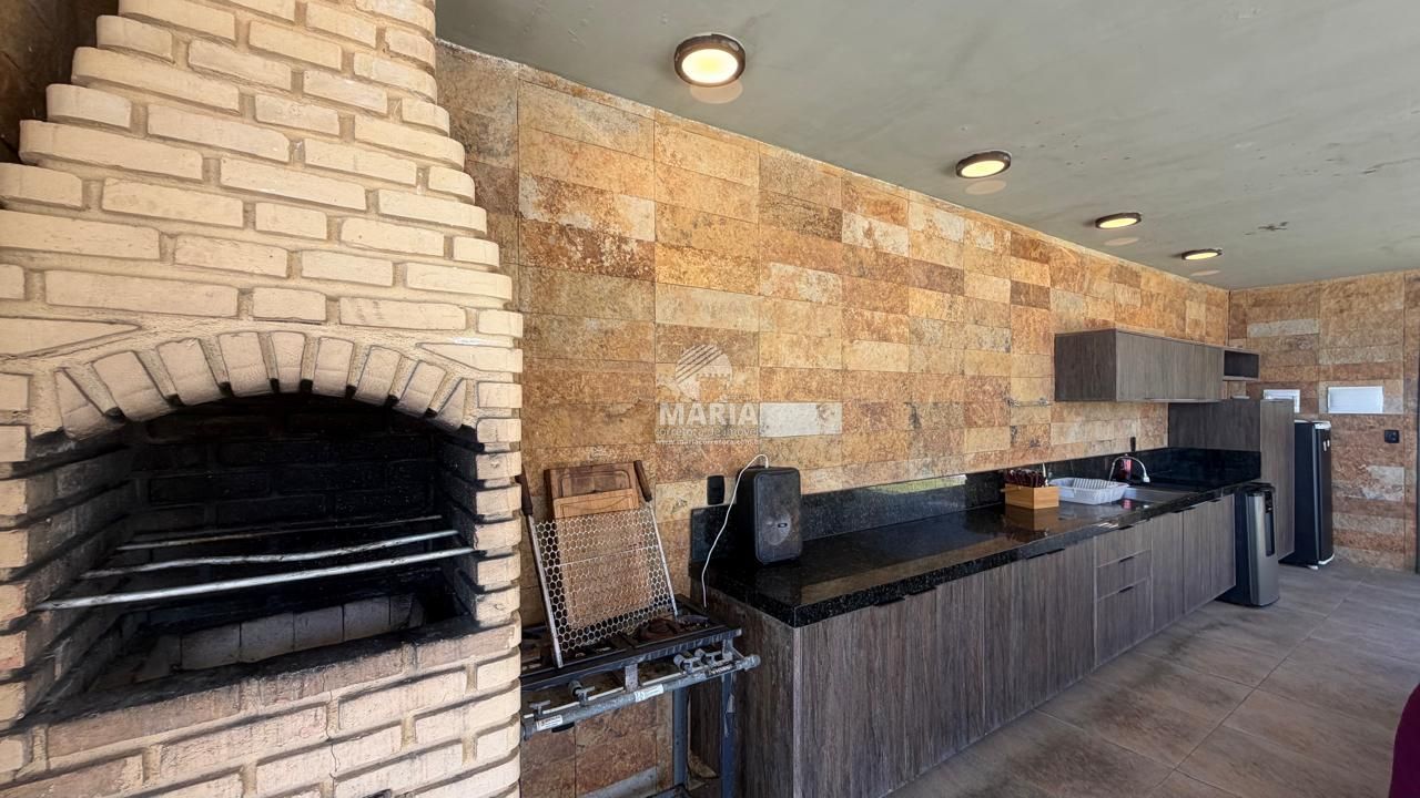 Espaço gourmet coberto com churrasqueira