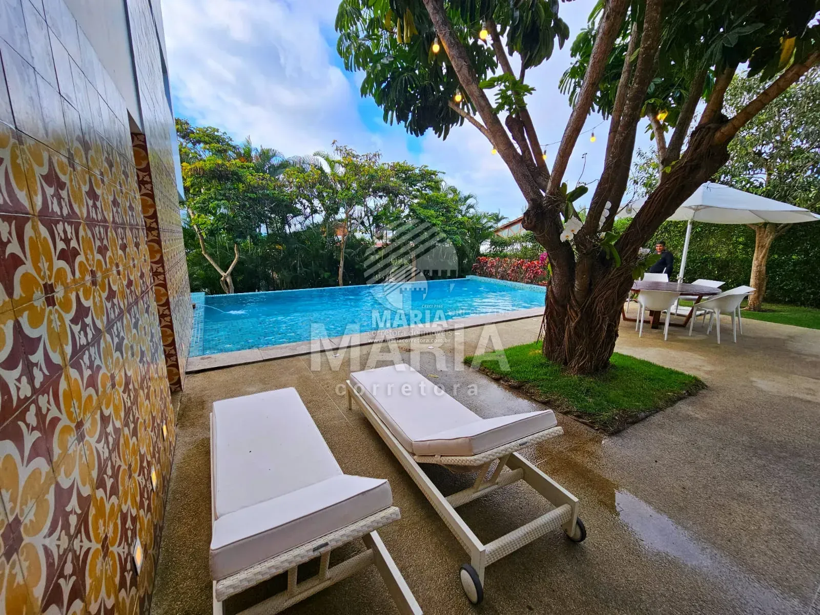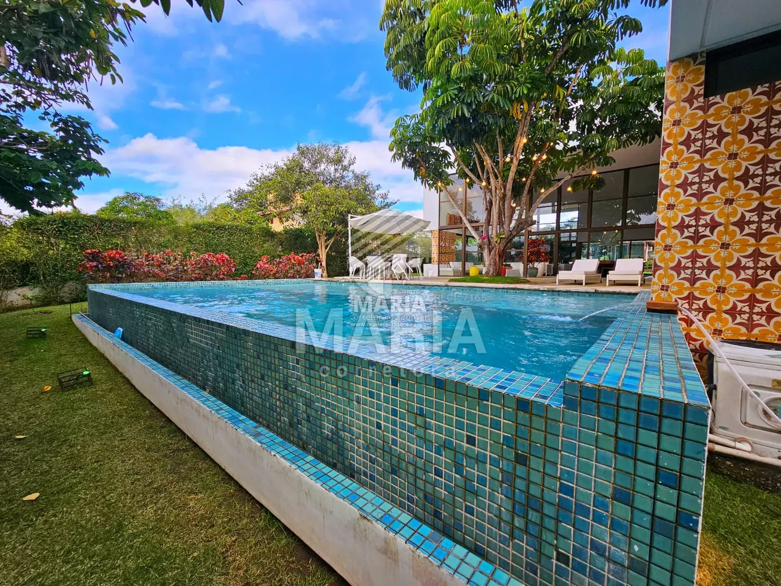 Piscina aquecida com borda infinita.